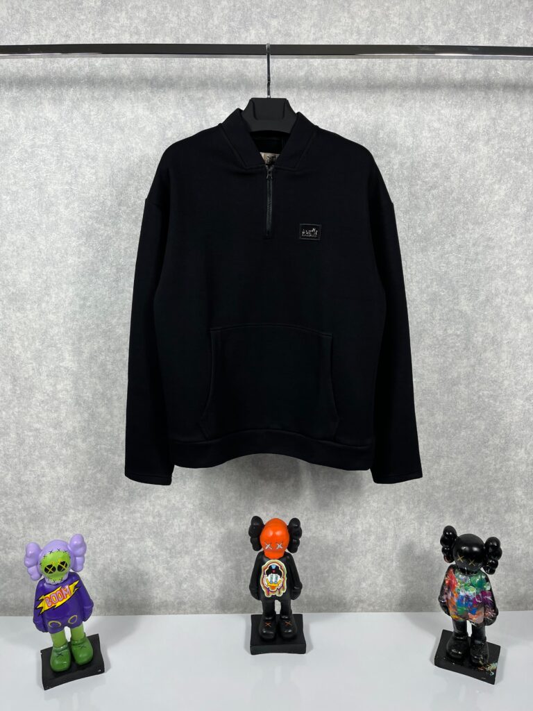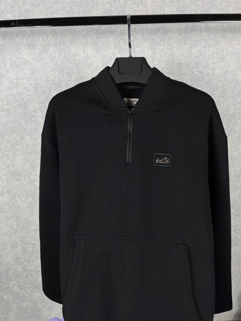 “Hermes” Logo Detail Half Zipper Блуза (Черно)
