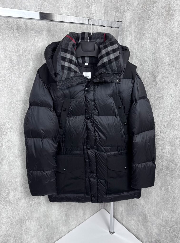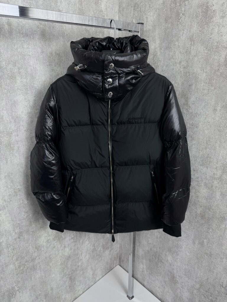 “Burberry” Contrast Panel Gabardine Puffer Яке с Гъши Пух (Черно)