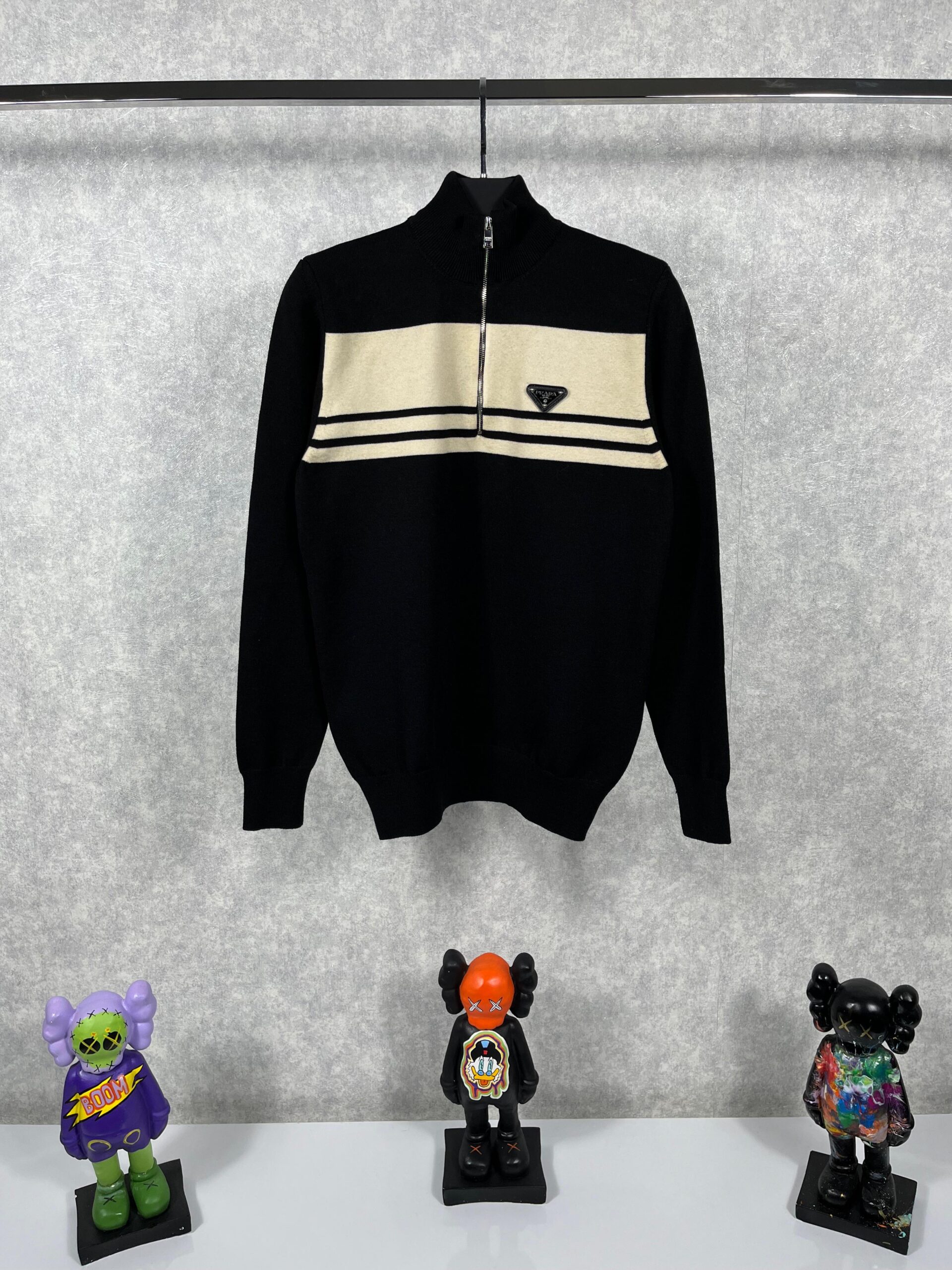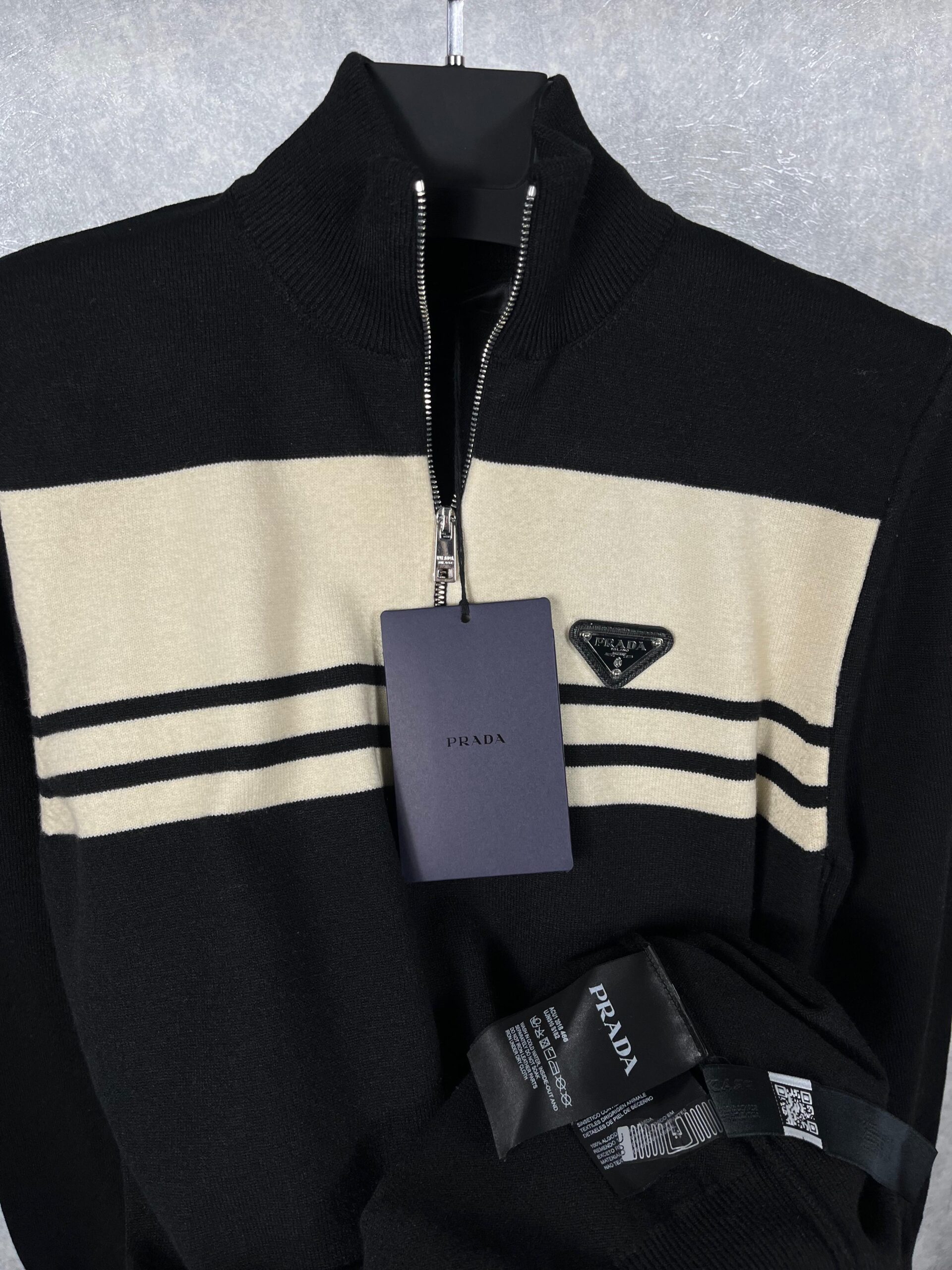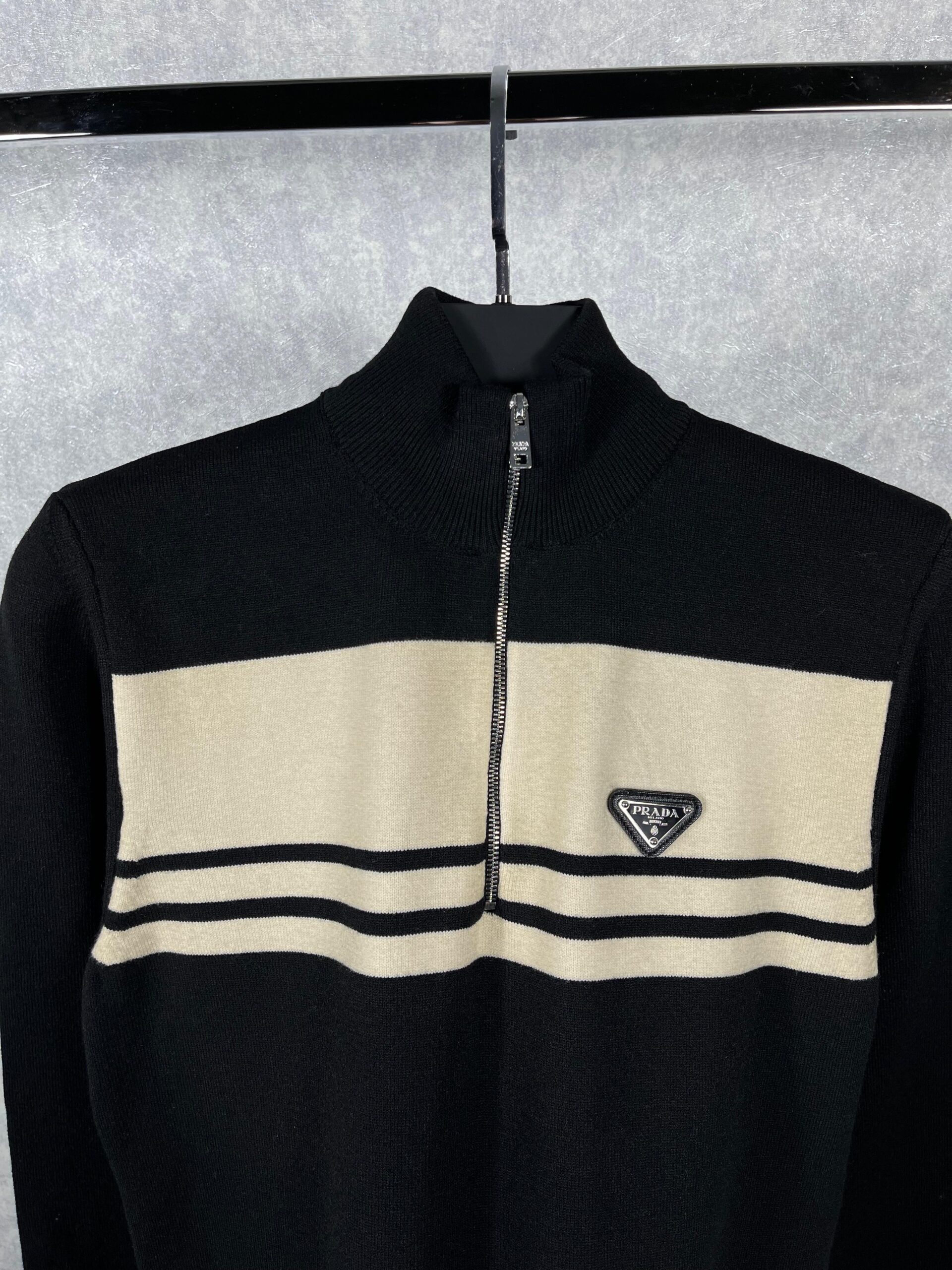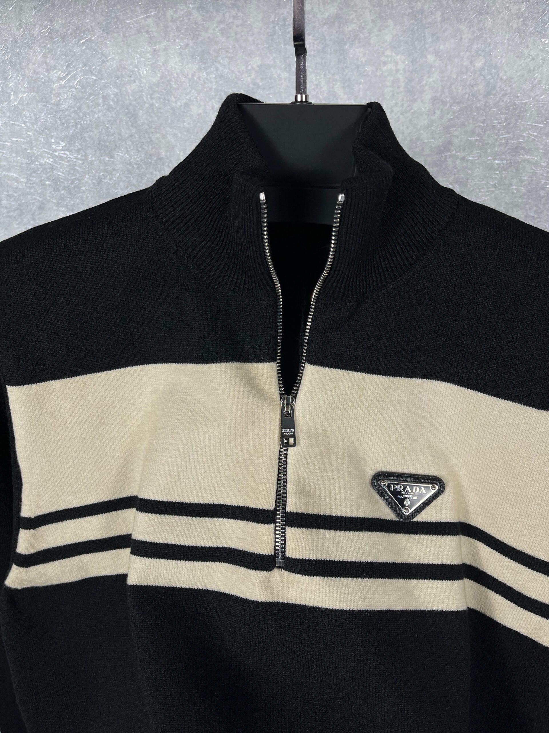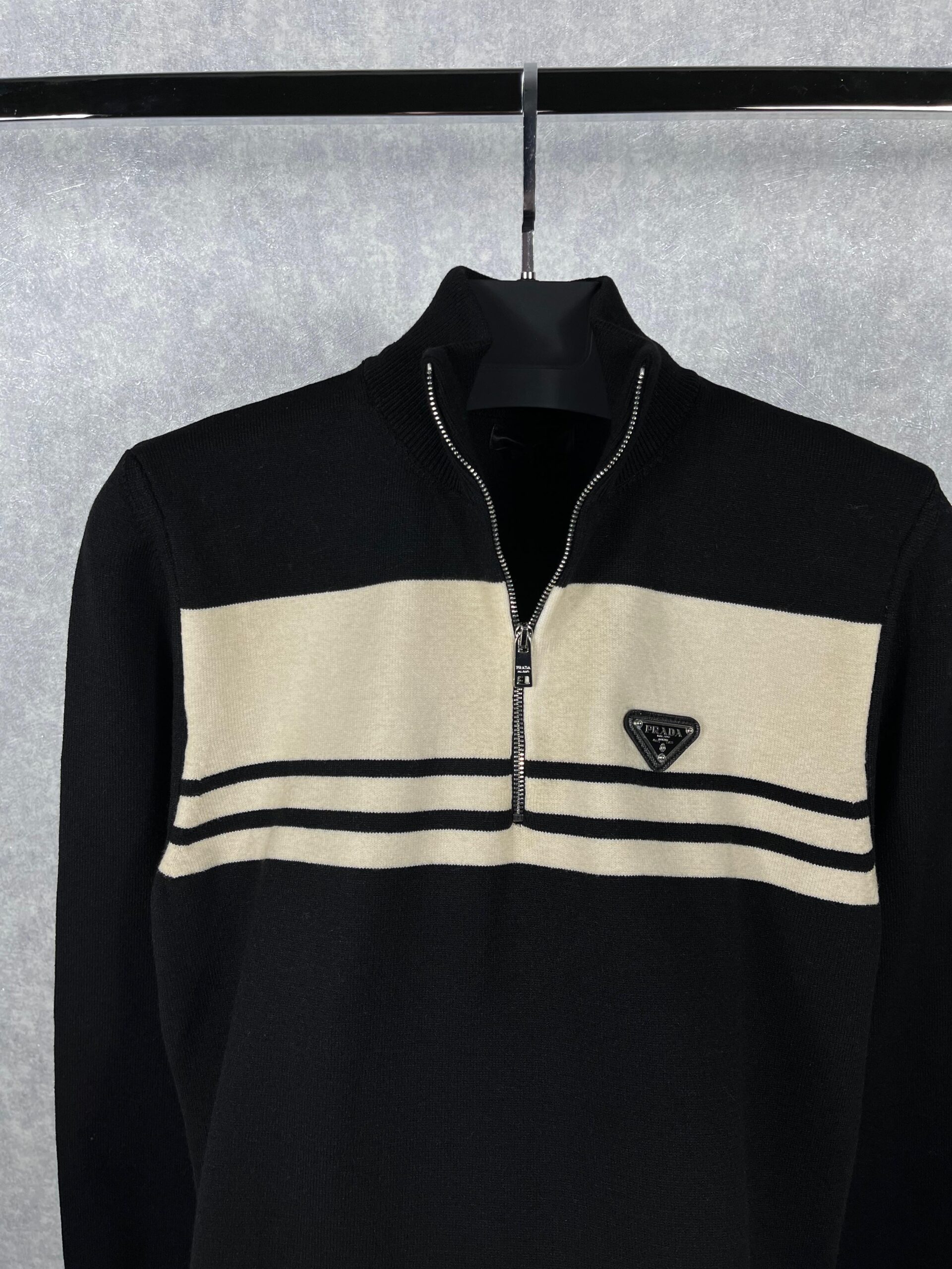 “Prada” Logo Detail Half-Zip Пуловер (Черно)